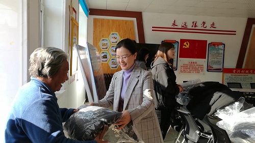 活动前期,所党委倡议全体职工积极购买吉兴村特色农副产品,经统计,通过购买木耳、蜂蜜、土鸡、干豆腐等农副产品累计3000余元;全体党员共筹集爱心款5980元用于购买羽绒服,大家用实际行动支持贫困村增加收入,让贫困户温暖过冬。在慰问活动现场,高君芝所长亲自将羽绒服一一交到贫困户手中,并与随行班子成员深入贫困户家中仔细了解他们近期的生活状况和困难情况,鼓励他们坚定信心,勇于克服困难,保持乐观积极的生活态度,用勤劳的双手创造美好生活。