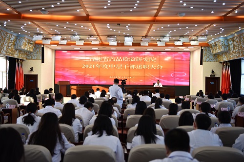 2022年1月13日上午9时,省药检院2021年度中层干部述职大会在省局六楼会议室举行。院长、党委书记高君芝,党委副书记房绍鹏,其他院领导申玉华、李秀芬、沙英威、刘震凌、赵艳出席会议。全院180余人到会参加。