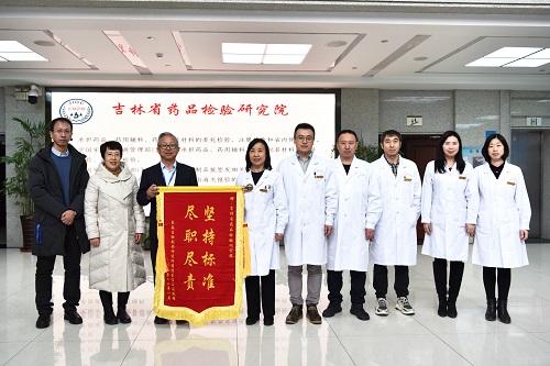 1月26日,长春生物制品研究所有限责任公司、长春海悦药业股份有限公司为吉林省药品检验研究院送来两面锦旗和感谢信,省药检院院长徐鹤、副院长申玉华及相关科室负责人与企业代表在会议室进行亲切会谈。